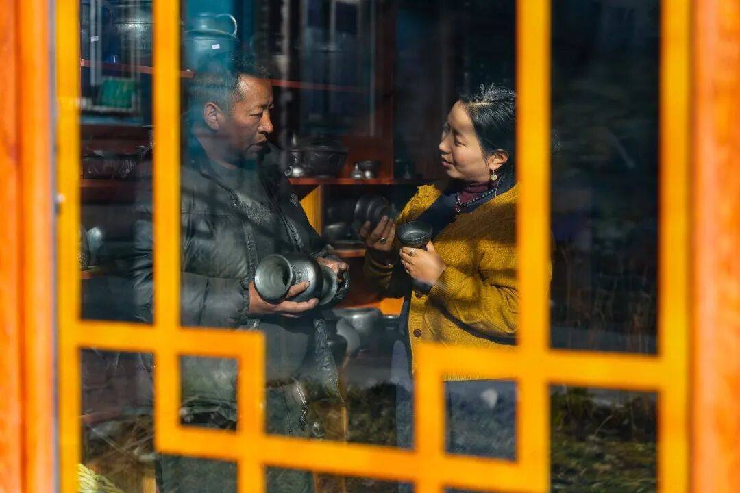 她坚持着“小而美”的定位,工坊的39位工匠是员工也如家人,他们农忙时回家,农闲时上工,冬季有长假,夏天也有“耍坝子”的假。没有KPI(关键绩效指标)的压力,只需不慌不忙地錾刻利玛铜。工坊里时光永远静好,外面的风雨,都由卓玛去扛。