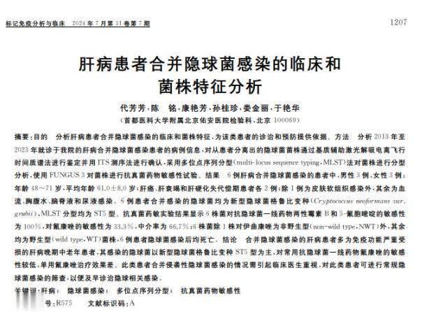参考资料:[1]代芳芳. 肝病患者合并隐球菌感染的临床和菌株特征分析, 标记免疫分析与临床股票配资技巧和方法, 2024-07-25